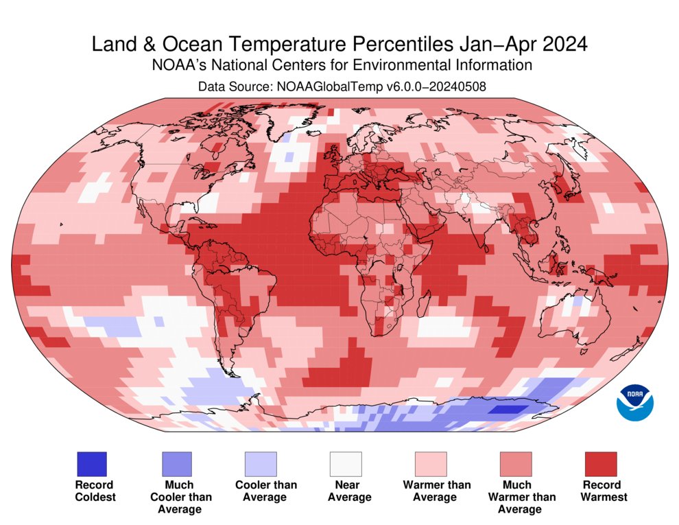2024 has been a warm one so far according to NOAA. From January through April - 2.41 degrees F above the 20th century average & the warmest first 4 months of the year on record.