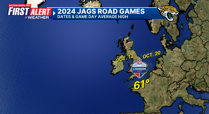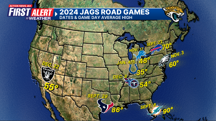 The Jaguars 2024 schedule has been released. Below you’ll find the avg. high temps. for each home & away game - go Jags!