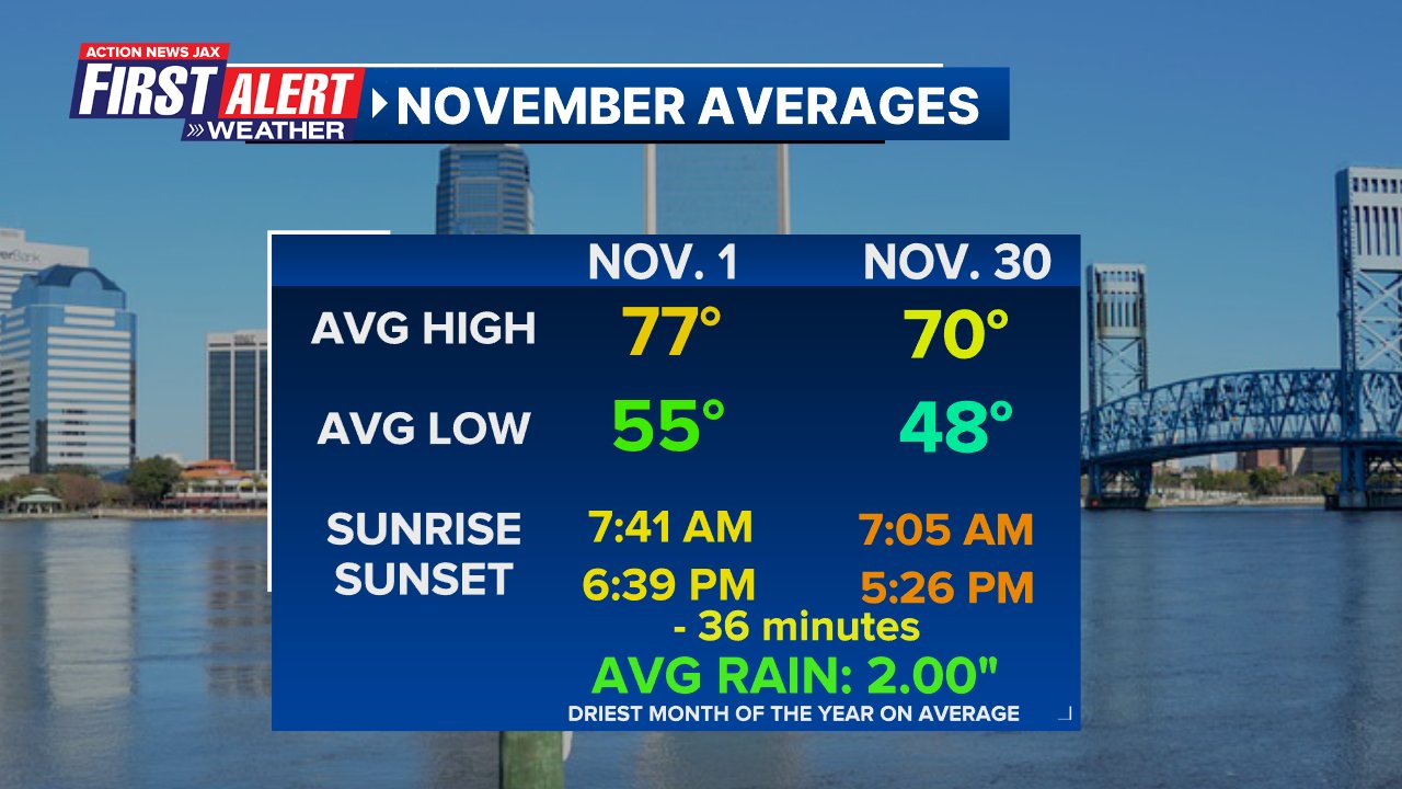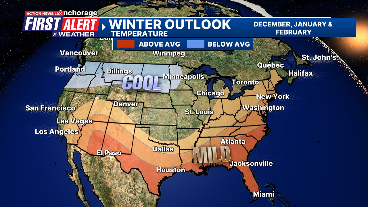 NOAA has issued their winter outlook for Dec.-Feb. & it’s largely predicated on a La Nina (cooling of the equatorial Pacific). So... generally mild & dry across the South... cooler & wetter across the north. For Jacksonville/NE Fl. & SE Ga.... above avg. temps. & below avg. rainfall are forecast. La Nina winters have been known to bring pretty extreme temps. to the local area with significant but generally short-lived freezes but also stretches of temps. reaching the 70s & 80s.