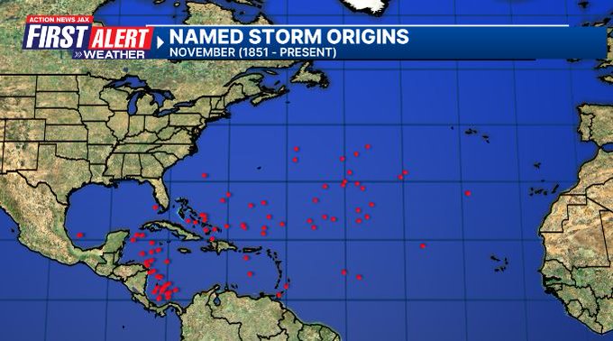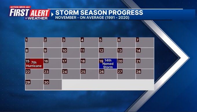 And November is the last month of the Atlantic hurricane season. The Western Caribbean can be a hot spot the last 4 weeks of the season. In the “average” season, the 7th hurricane & 14th named storm occurs but 2024 has already beaten both of those (15 named storms, 10 hurricanes).