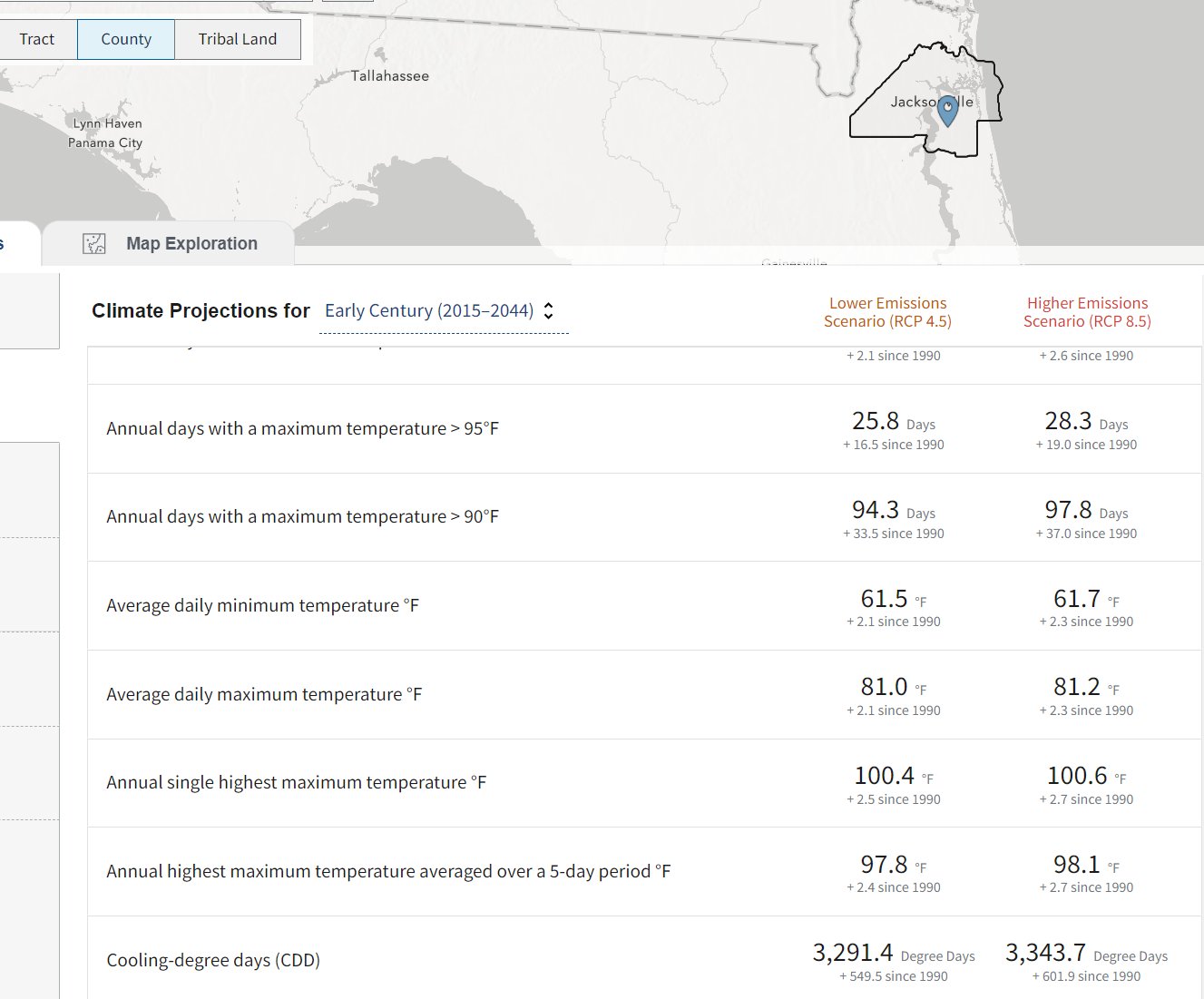 Our U.S. gov’t has launched an online climate portal - click * here *. You can input your zip code to get a variety of weather - some is real time - & climate info. There is an attempt at future climate conditions based on a “lower vs. higher” emissions scenario which may or may not be accurate. I’d like to see another column added showing the 30-year avg. In any case, it’s an interesting site. According to the White House fact sheet: