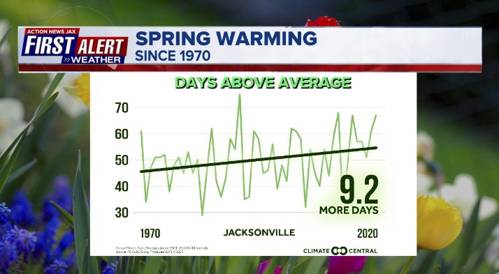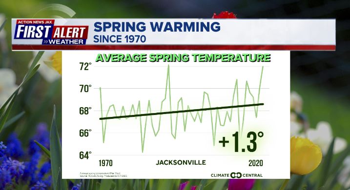 Jacksonville, FL — It’s “officially” spring according to the calendar & the Spring Equinox. Remember our seasons are controlled by the tilt of the earth. The sun is tilted toward the earth during the summer when our temps. are warmest thanks to the most direct sunlight over the Northern Hemisphere. Earth is at its *greatest distance* from the sun during the summer(!).