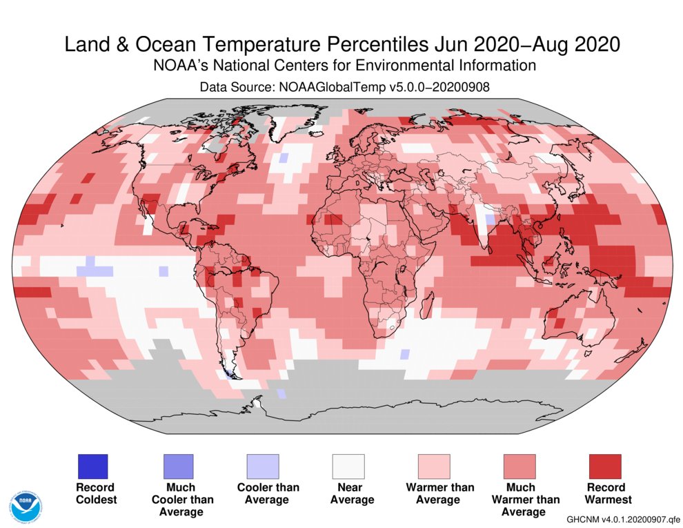 The numbers are in on “meteorological” summer (June/July/Aug.). For Jacksonville, it was “only” seasonally hot & humid, just about right at average. But for much of the rest of the U.S. - & globe for that matter - it was sizzling - possibly the 2nd hottest on record.