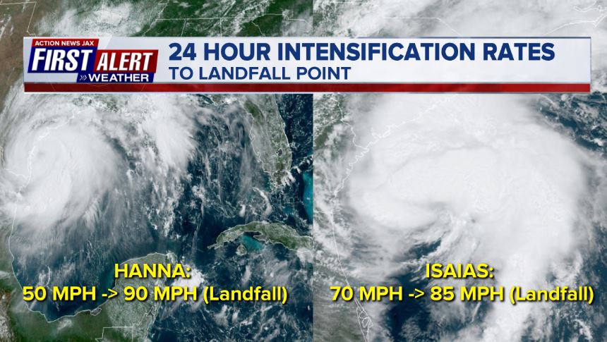 Hanna landfall - South Texas... Isaias - N./S. Carolina: