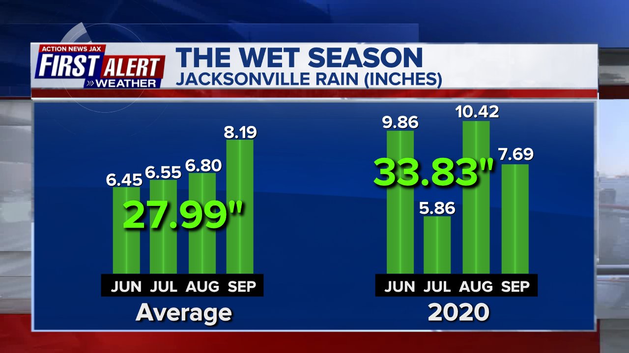 For Jacksonville/NE Fl./SE Ga., La Nina winters often have big temp. swings - including freezes - & are generally drier. So we may need all the moisture we can get heading into winter. So far, so good (through Sept. 17th):