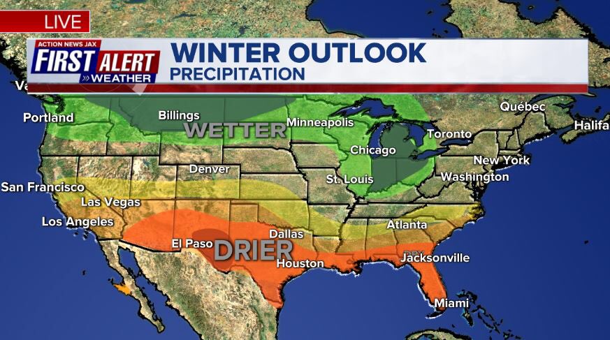 NOAA has issued their winter outlook. The forecast is largely predicated on the developing & maturing La Nina - cooling of the equatorial Pacific. In general... the pattern is expected to favor cooler than avg. temps. across the Northern Plains/Pacific NW to warmer than avg. across much of the south & eastern third of the U.S. Precip. tends to be above avg. in the Ohio Valley & Northern U.S. .... below avg. across the South. For Jacksonville/NE Fl./SE Ga.: the “call” is for above avg. temps. & below avg. precip. so dry & mild. Several points to ponder: