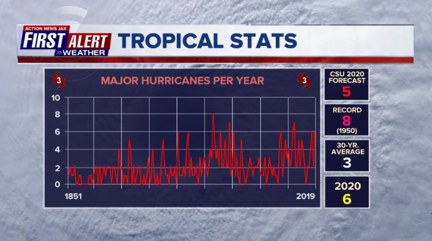 * 6 “major” (Cat. 3+) hurricanes tied for 2nd most...