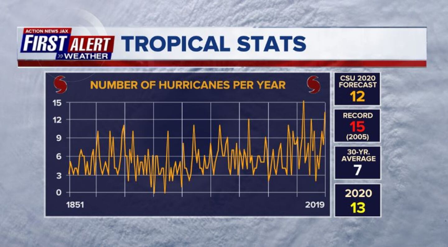 * 2020 made it a record 5 straight years with an above avg. number of names storms beating the record of 4 years straight from 1998-2001...