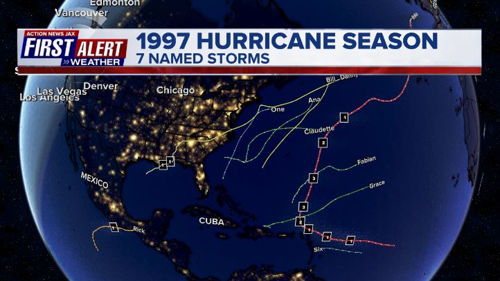 August ended with no named Atlantic storms. That’s only the third time in the satellite era (joining 1961 & 1997). 1961 ended up being very active with 12 named storms after Sept. 1 while there were only 3 named storms in 1997 in Sept.-Nov. Tropical systems did not impact Fl. or Ga. either year.