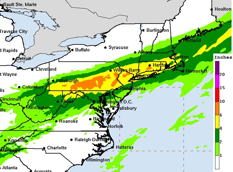 Rainfall forecast from Ida remnants forecast to be more than half a foot for parts of the Northeast: