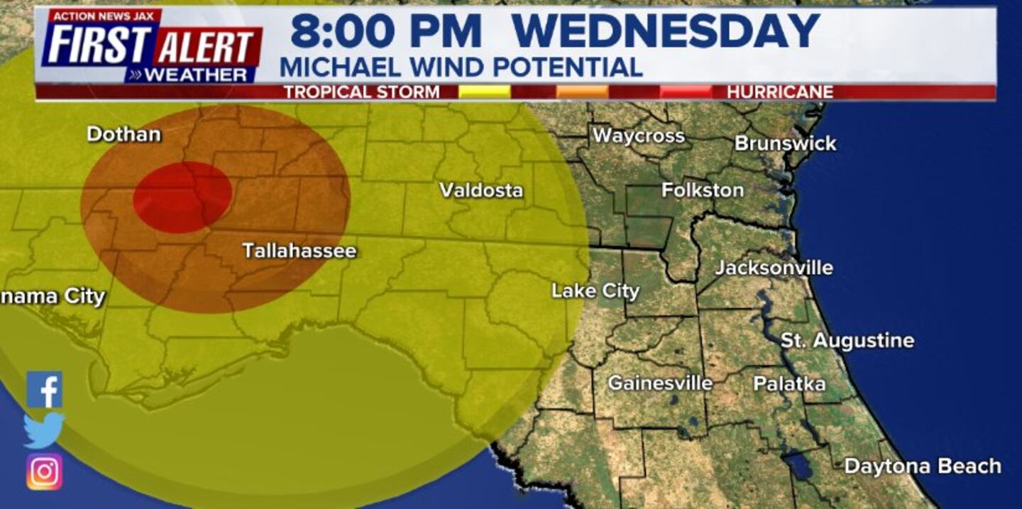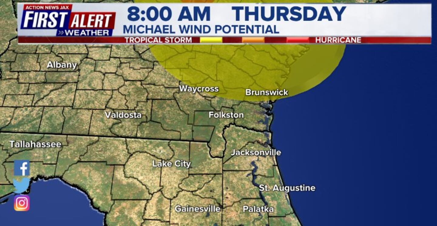 Given the straight forward path - centered on the Central Panhandle - local impacts for Jacksonville, NE Fl. & SE Ga. remain as follows (primarily fringe for Jax/NE Fl. but more impactful for SE Ga.):